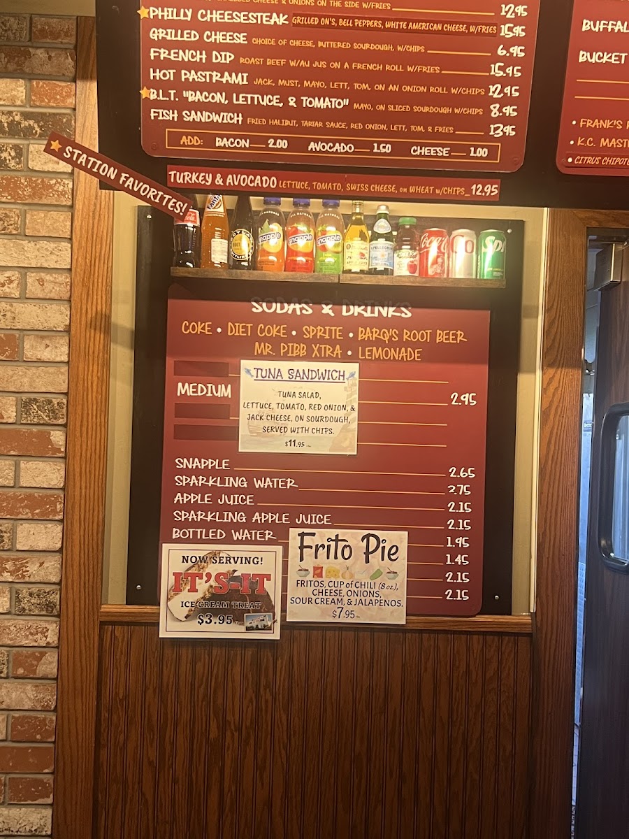 1/3 lb. beef patty w/American cheese, lettuce, tomato, onion, mayo, mustard, & relish, on a bun. Comes w/Chips.